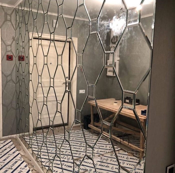 • Зеркальное панно на стене прихожей